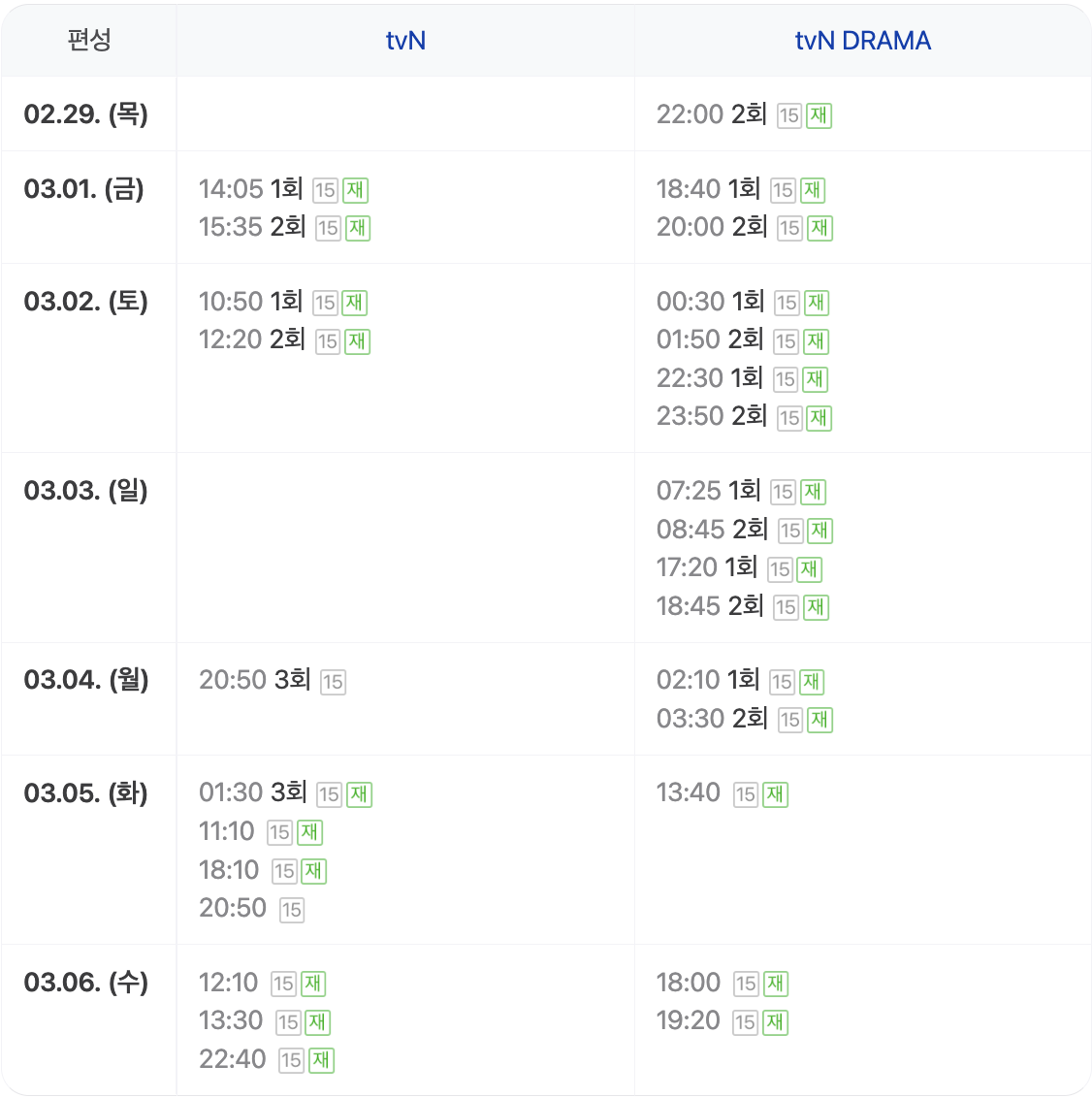 tvN 월~화 20:50 방송